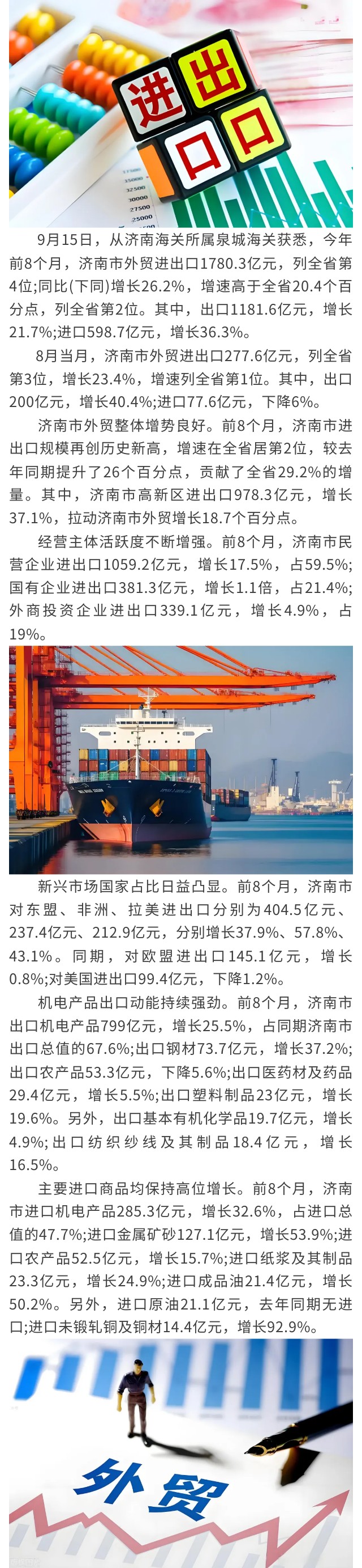 济南外贸提速丨前8个月外贸进出口1780.3亿元,同比增长26.2%